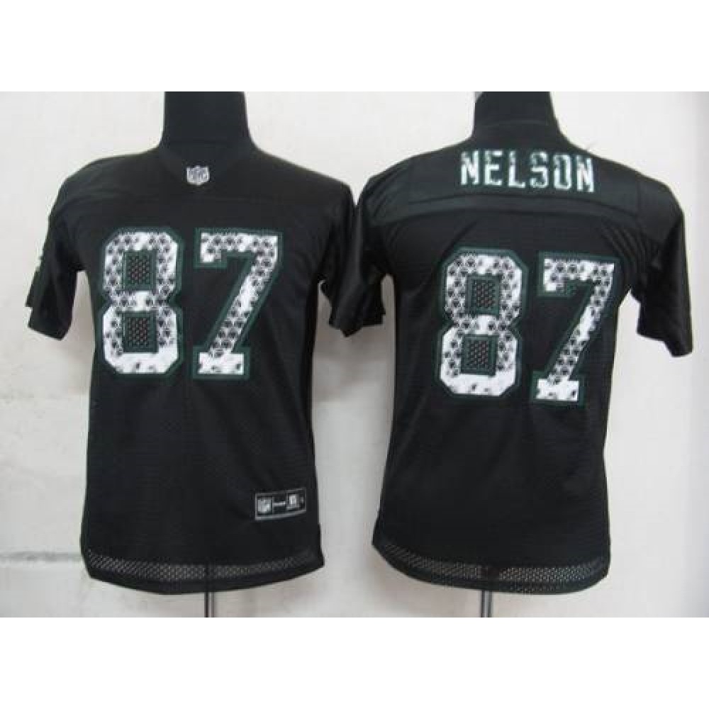Sideline Black United Packers #87 Jordy Nelson Black Stitched Youth NFL Jersey