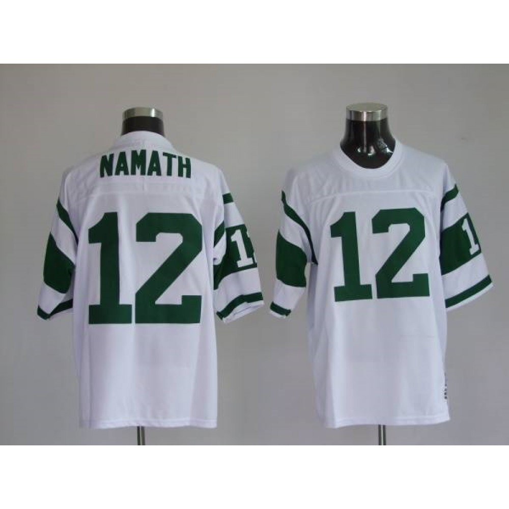 Mitchell and Ness Jets Joe Namath #12 Stitched White NFL Jersey