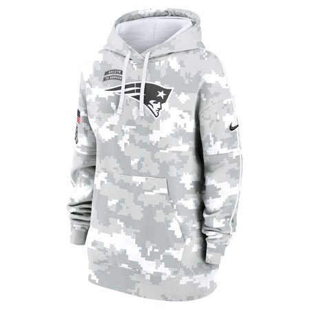 Women's New England Patriots Nike Arctic Camo 2024 Salute To Service Club Fleece Pullover Hoodie
