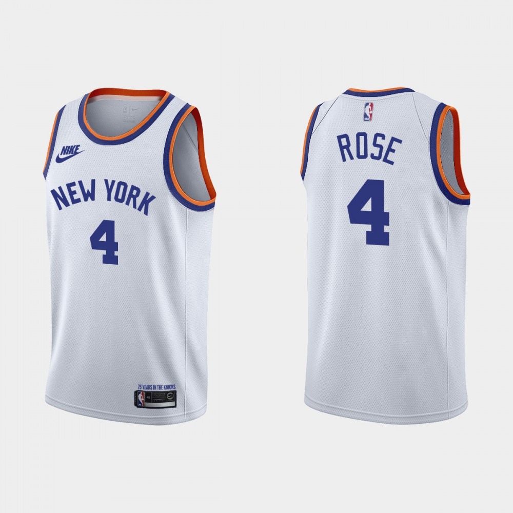 Men's New Yok Knicks #4 Derrick Rose 2021/2022 White 75th Anniversary City Edition Stitched Jersey