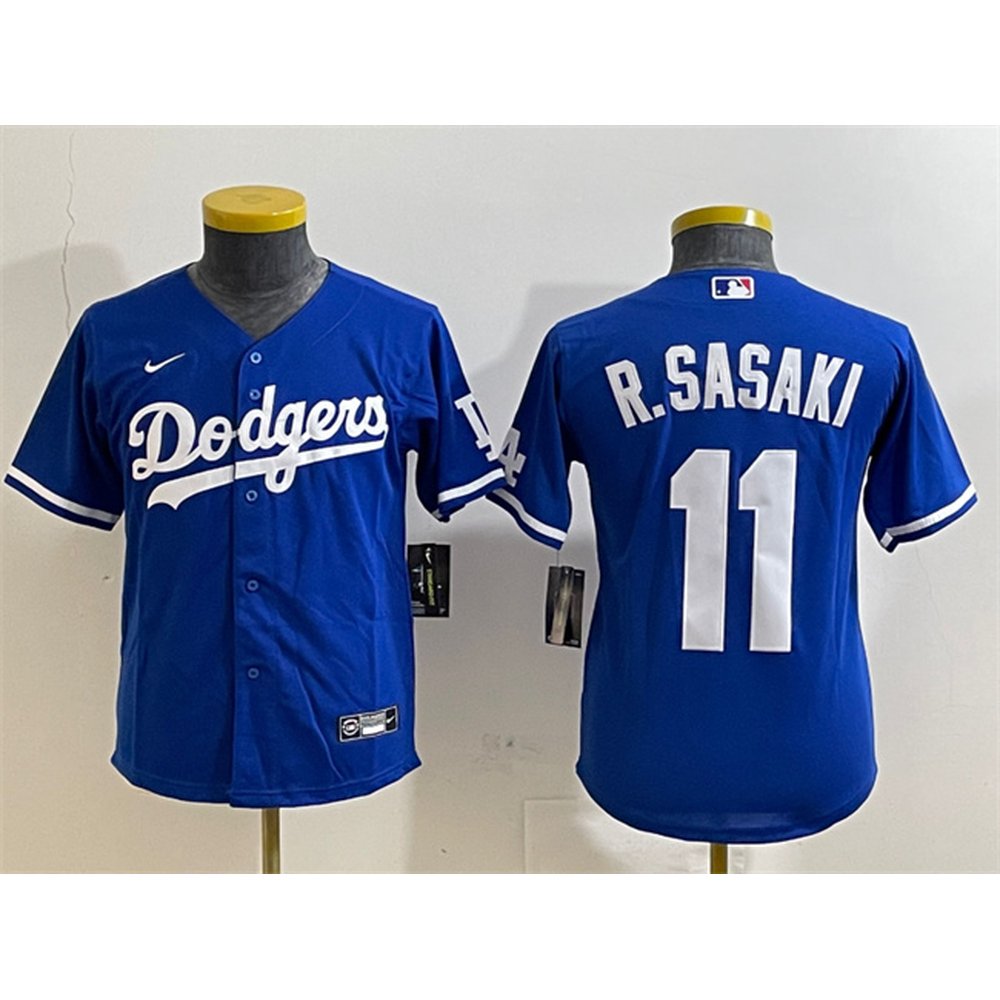 Youth Los Angeles Dodgers #11 Roki Sasaki Royal Cool Base Stitched Baseball Jersey