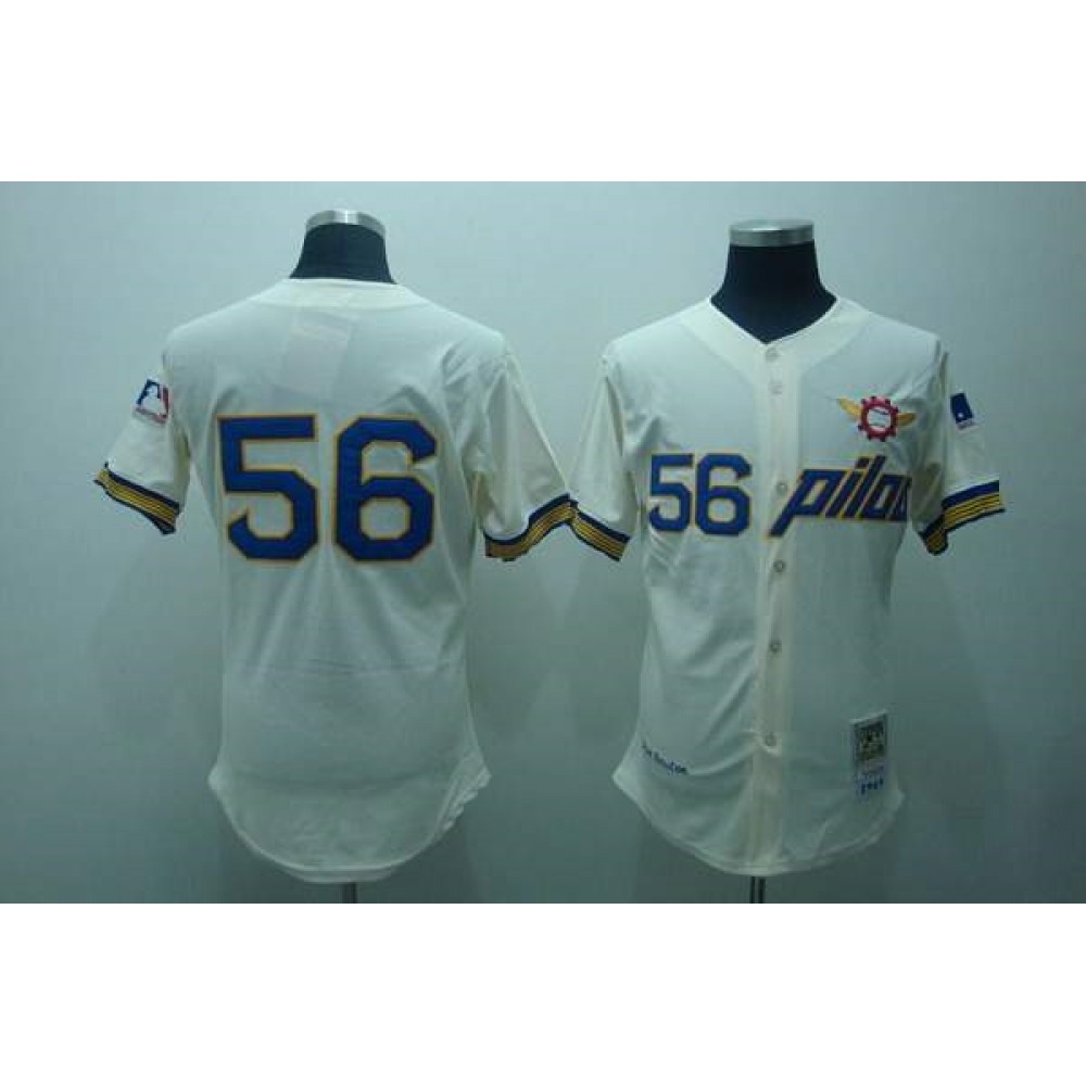 Mitchell and Ness Pilots #56 Jim Bouton Stitched Cream Throwback MLB Jersey