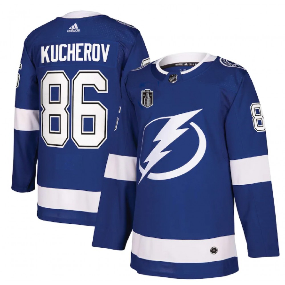 Men's Tampa Bay Lightning #86 Nikita Kucherov 2022 Blue Stanley Cup Final Patch Stitched Jersey