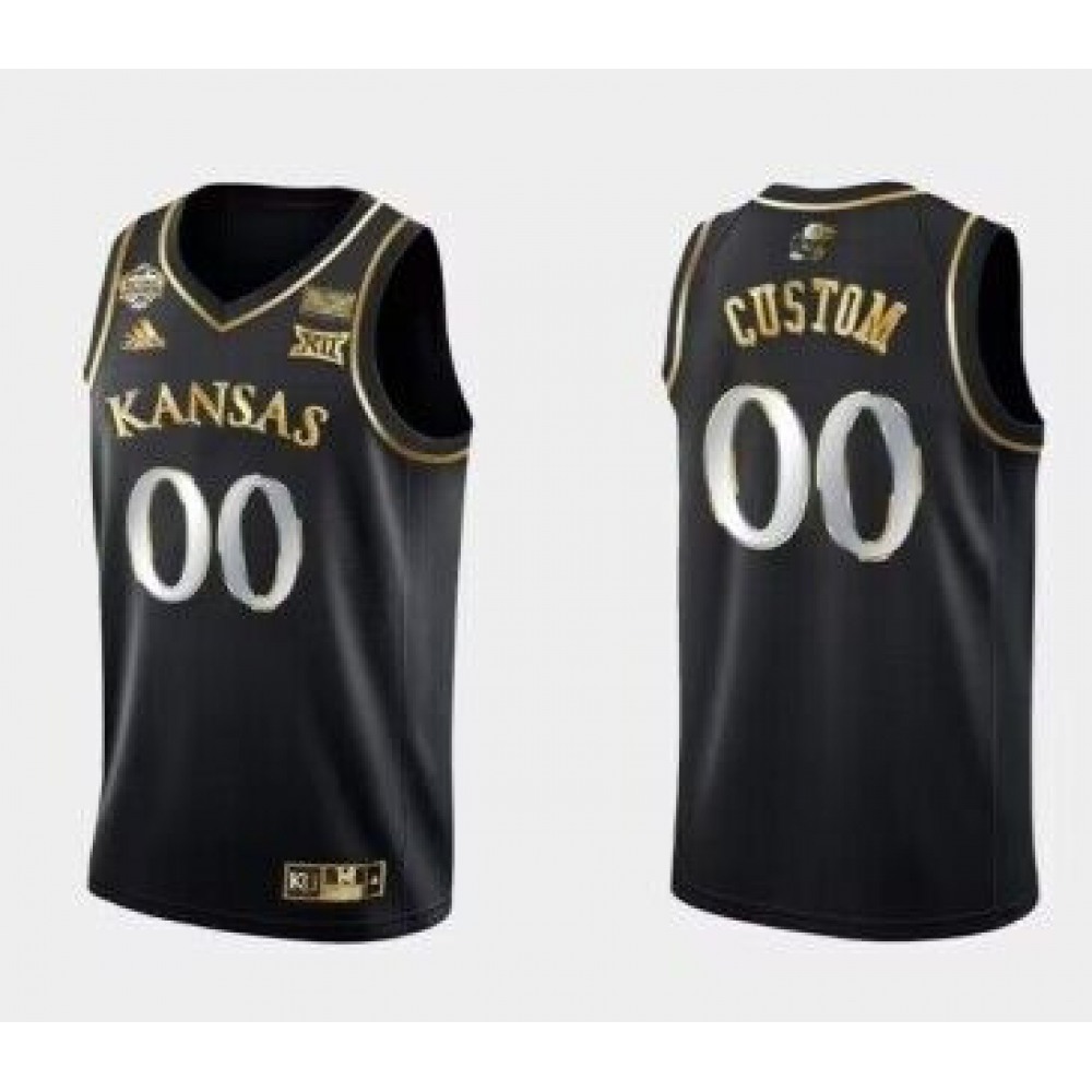 Men's Kansas Jayhawks Custom Black Gold Stitched Basketball Jersey
