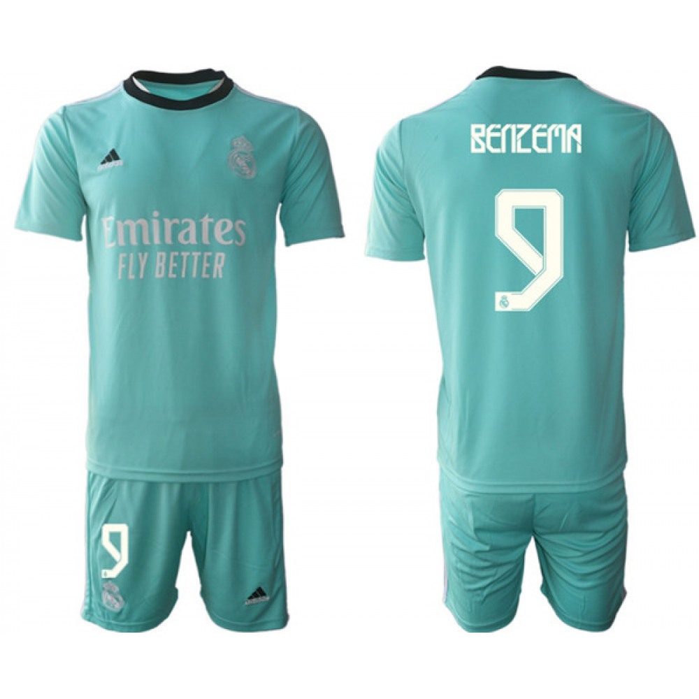 Men's Real Madrid #9 Karim Benzema 2021/22 Teal Away Soccer Jersey Suit