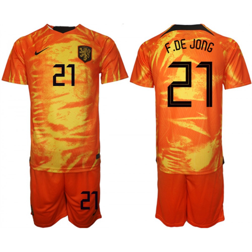 Men's Netherlands #21 F. De Jong Orange Home Soccer Jersey Suit