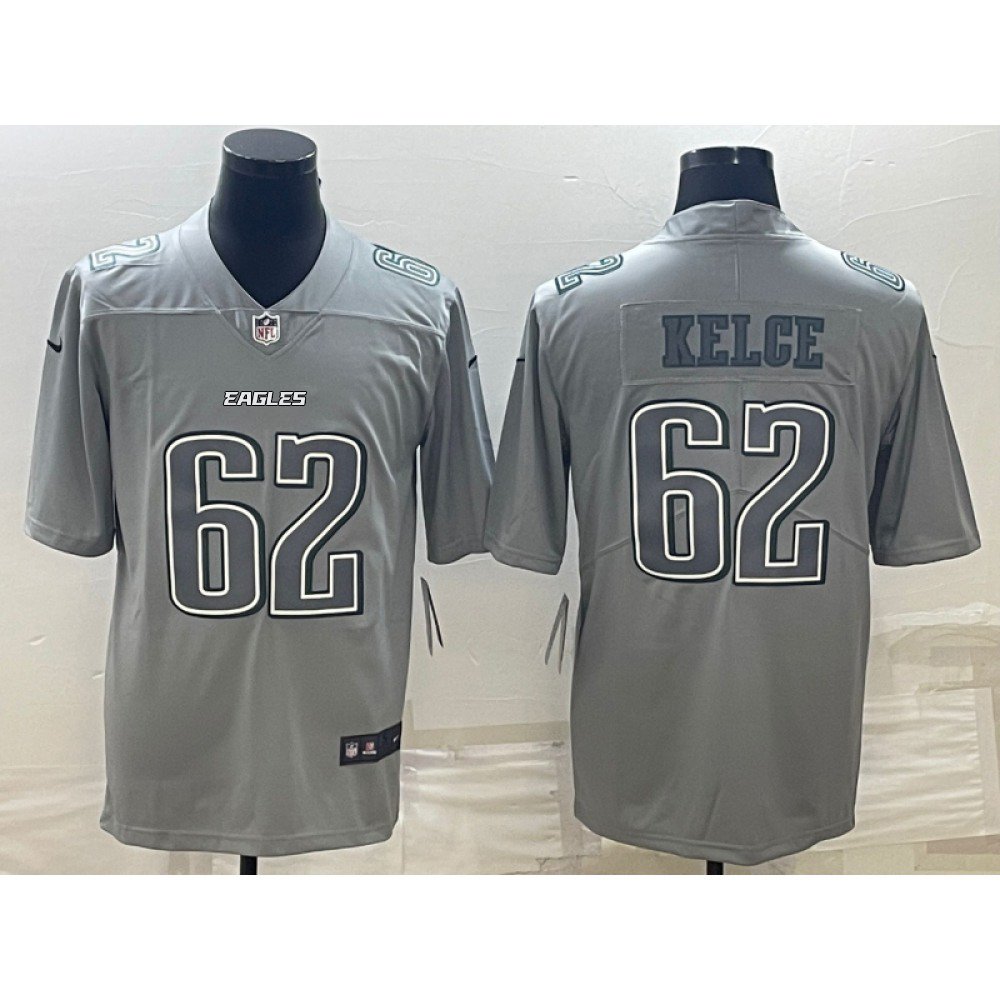 Men's Philadelphia Eagles #62 Jason Kelce Gray Atmosphere Fashion Stitched Jersey