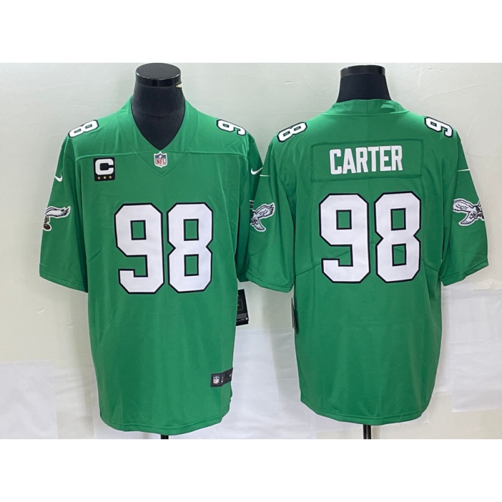 Men's Philadelphia Eagles #98 Jalen Carter Green Vapor Limited With 3-star C Patch Stitched Football Jersey