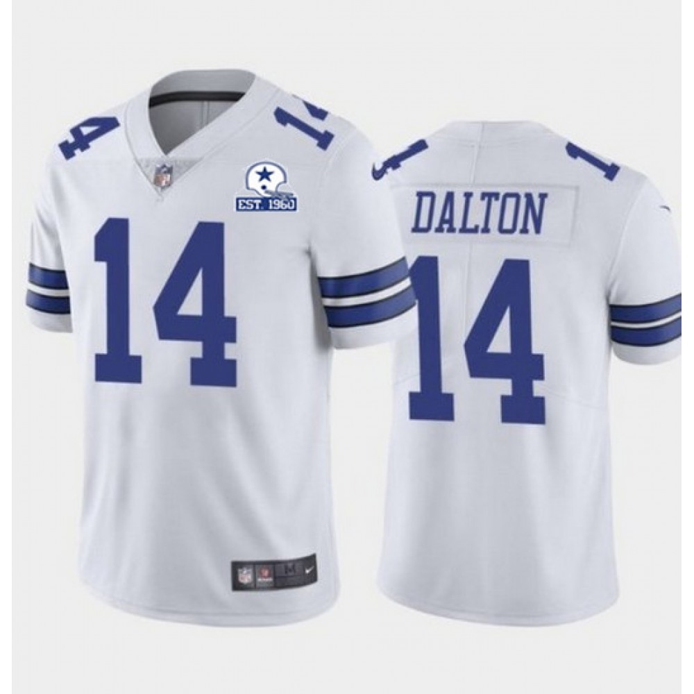 Men's Dallas Cowboys #14 Andy Dalton White With Established In 1960 Patch Limited Stitched Jersey