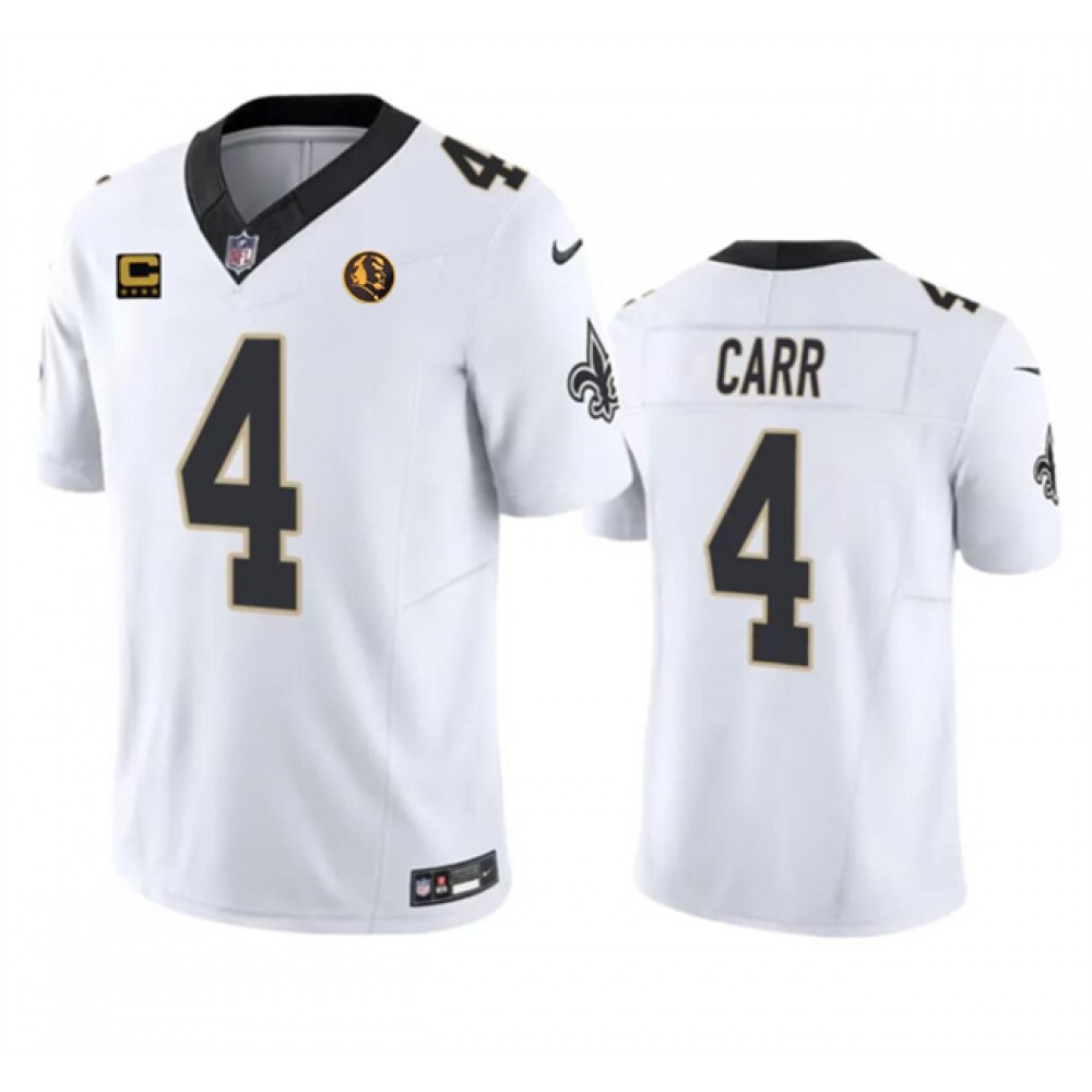 Men's New Orleans Saints #4 Derek Carr White 2023 F.U.S.E. With 4-star C Patch And John Madden Patch Vapor Limited Stitched Football Jersey