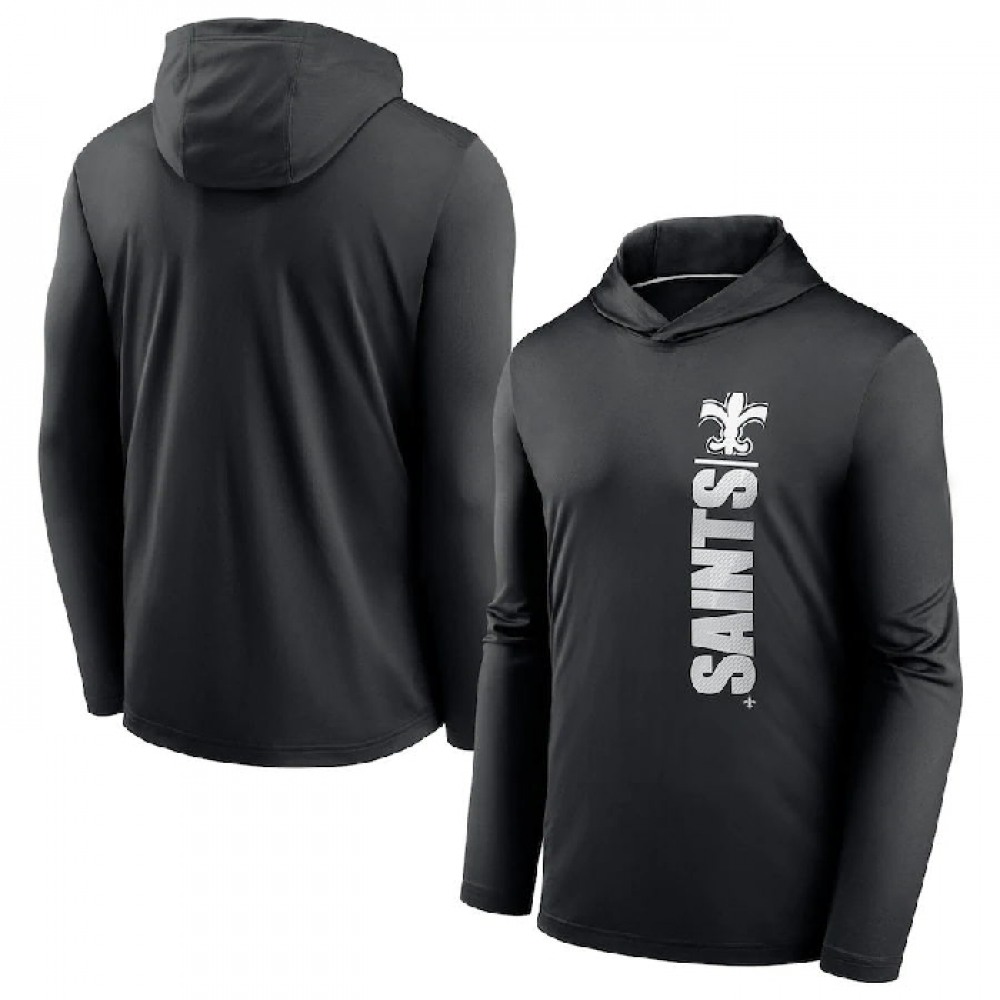 Men's New Orleans Saints Black Fan Gear Team Stack Hoodie Performance Long Sleeve T-Shirt