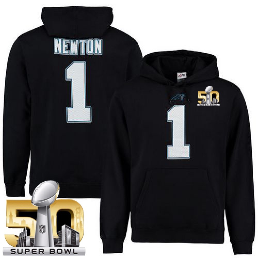 Panthers #1 Cam Newton Black Super Bowl 50 Majestic Eligible Receiver II Name & Number NFL Hoodie