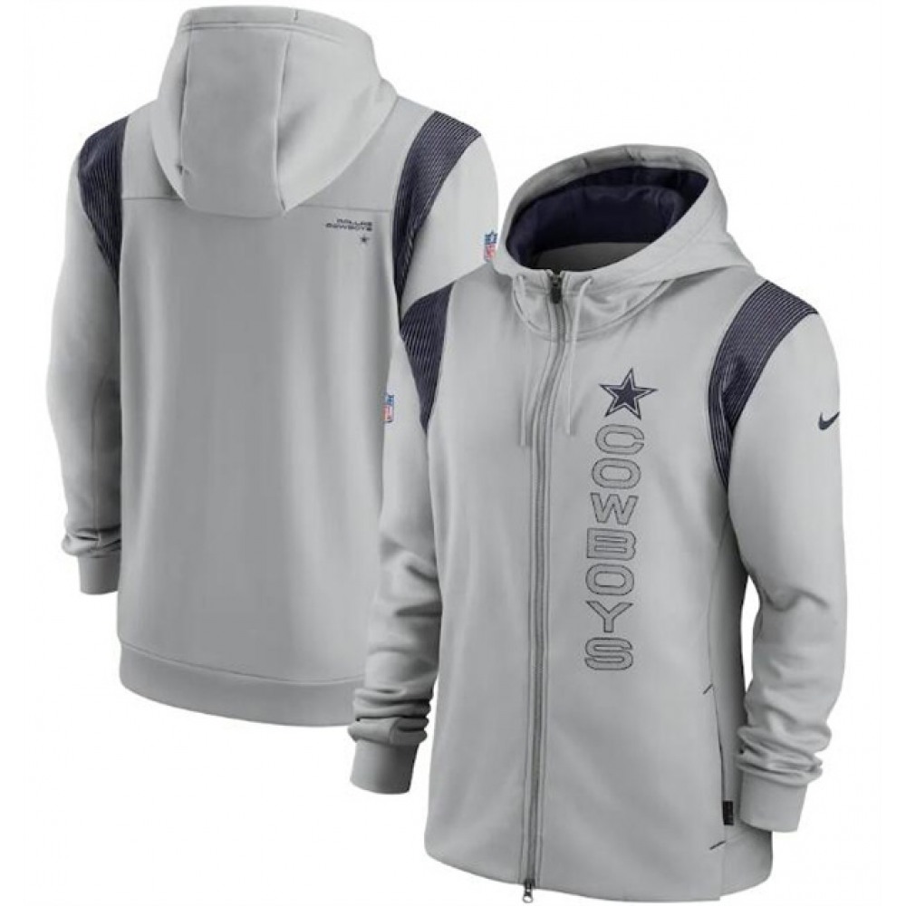 Men's Dallas Cowboys 2021 Gray Sideline Team Performance Full-Zip Hoodie