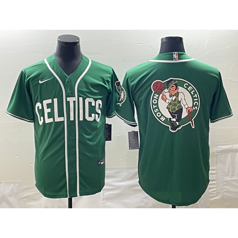 Men's Boston Celtics Green Team Big Logo With Patch Stitched Baseball Jersey