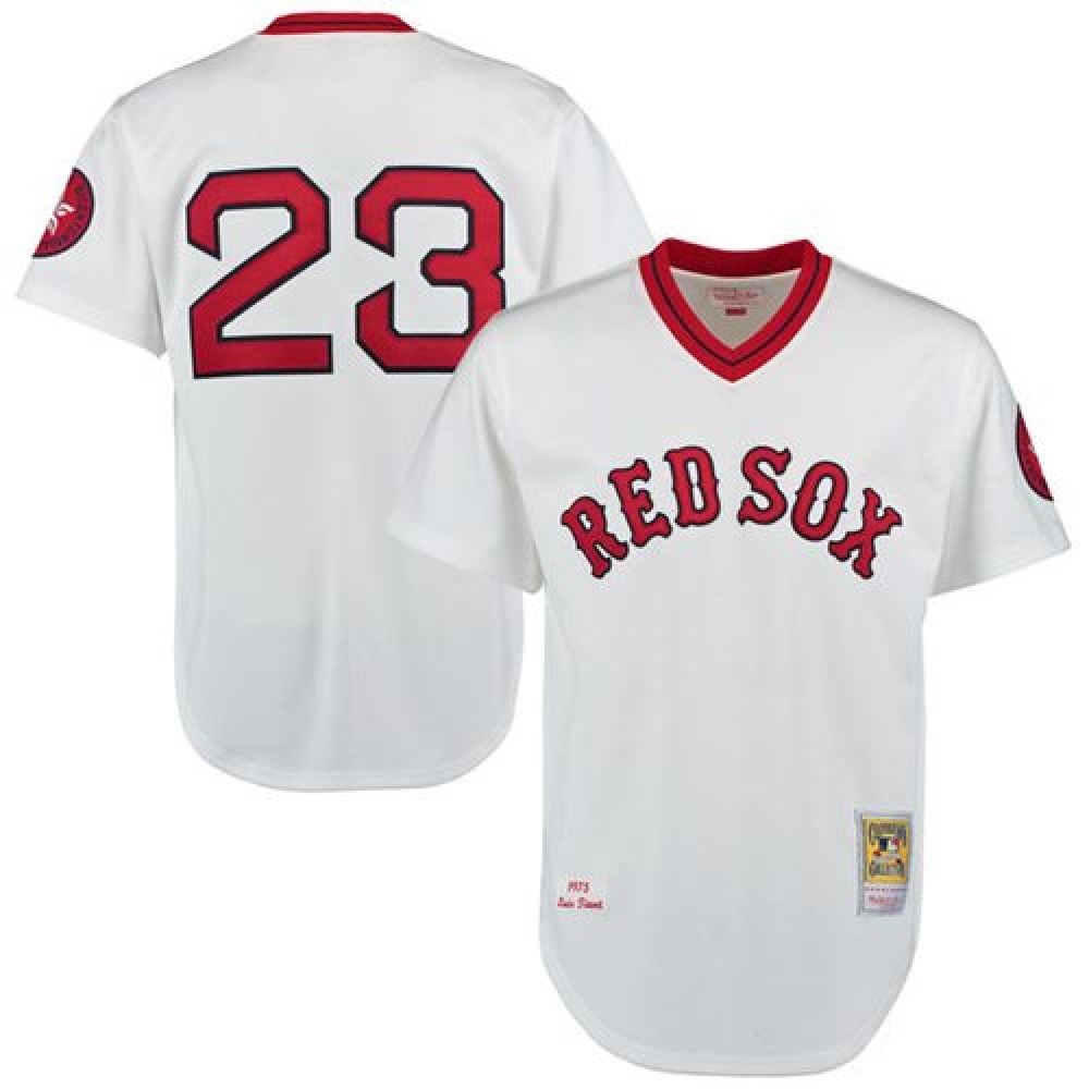 Mitchell And Ness 1975 Red Sox #23 Luis Tiant White Throwback Stitched MLB Jersey