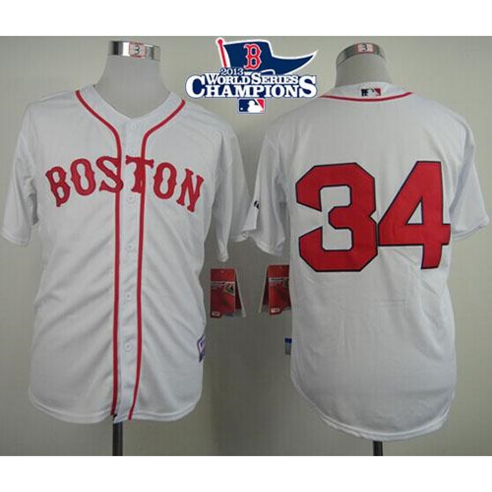 Red Sox #34 David Ortiz White Cool Base 2013 World Series Champions Patch Stitched MLB Jersey