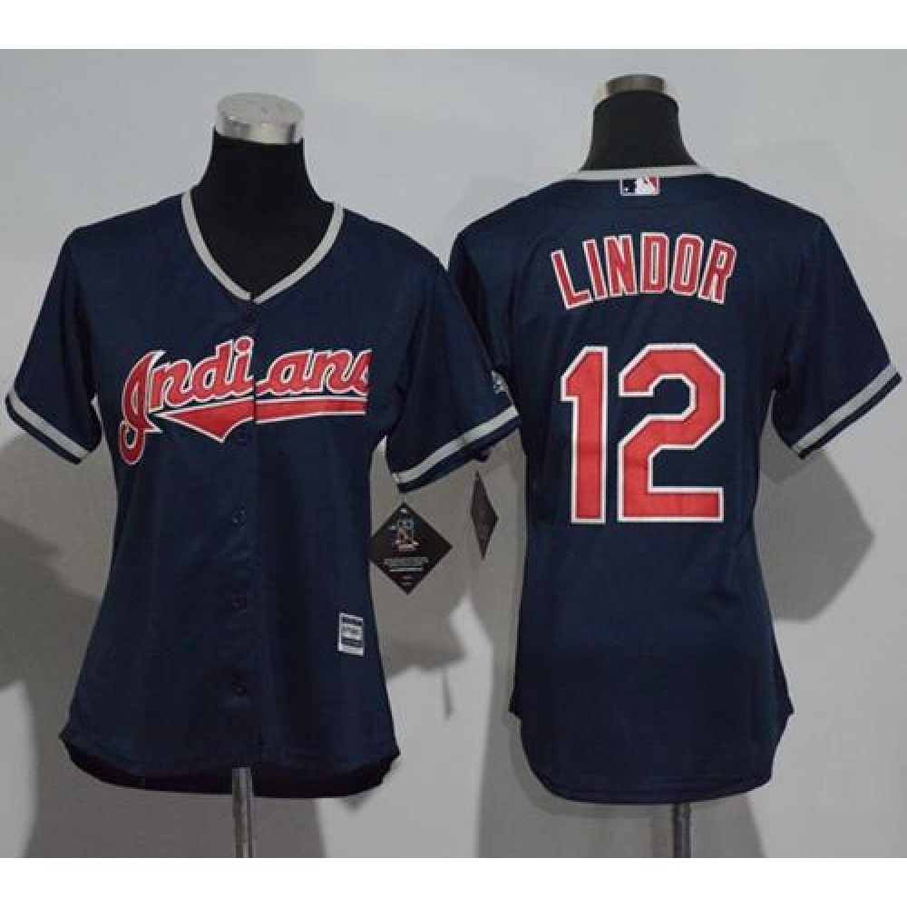indians #12 Francisco Lindor Navy Blue Women's Alternate Stitched MLB Jersey
