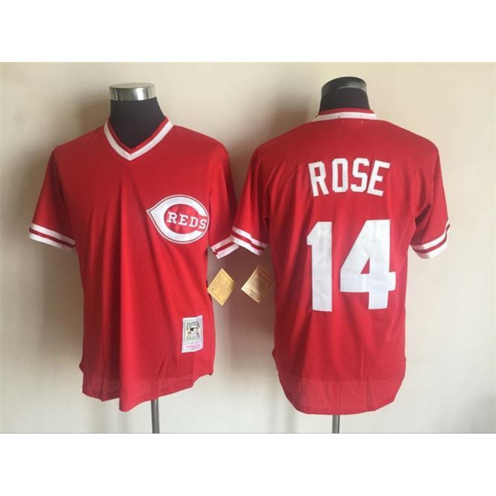 Men's Cincinnati Reds #14 Pete Rose Mitchell And Ness Red Throwback Stitched MLB Jersey
