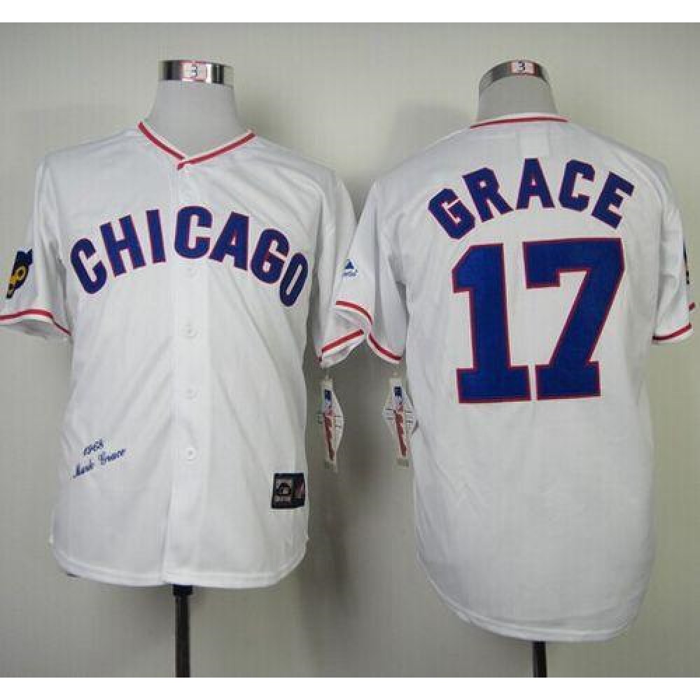 Mitchell And Ness 1968 Cubs #17 Mark Grace White Throwback Stitched MLB Jersey