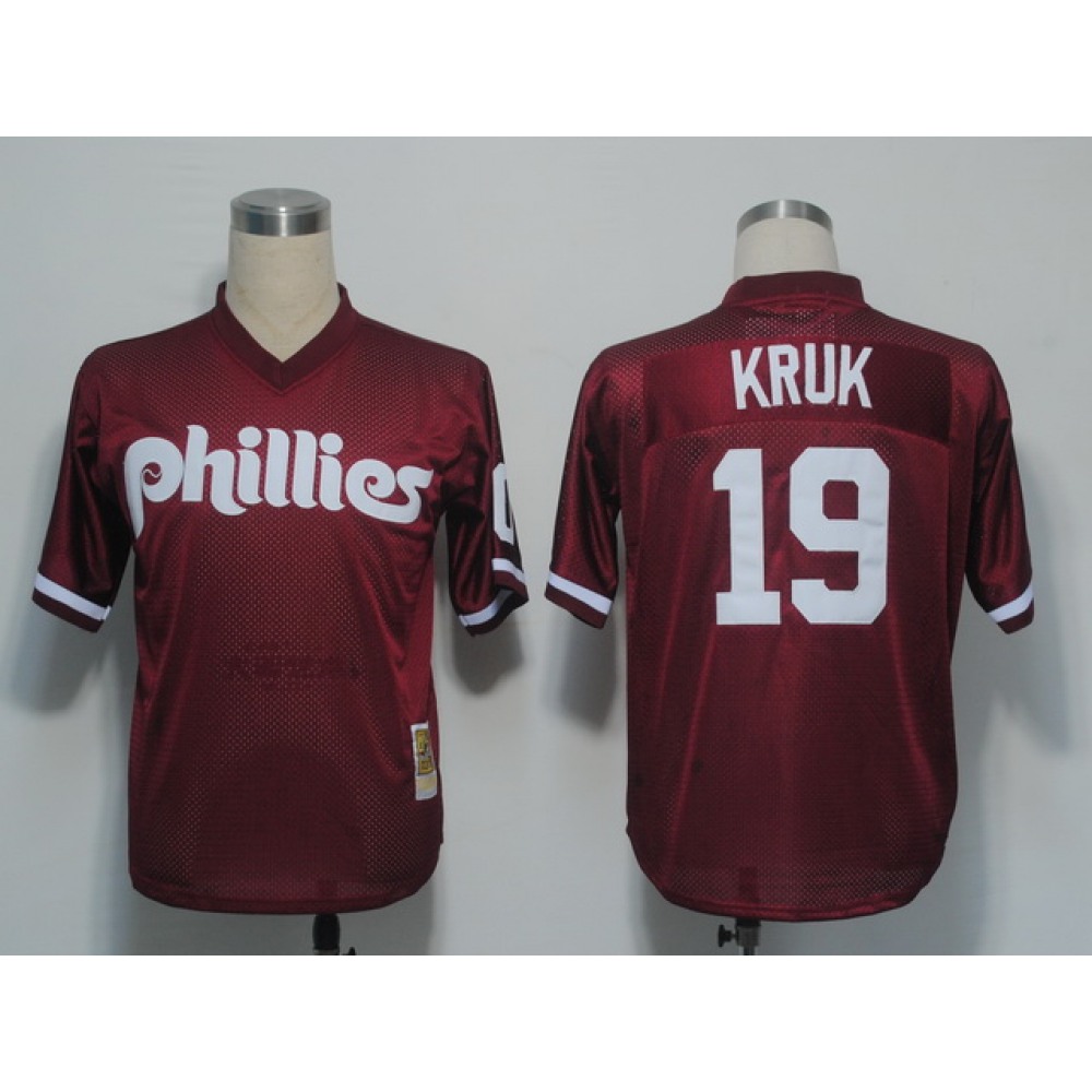 Mitchell and Ness 1991 Phillies #19 John Kruk Red Stitched MLB Jersey