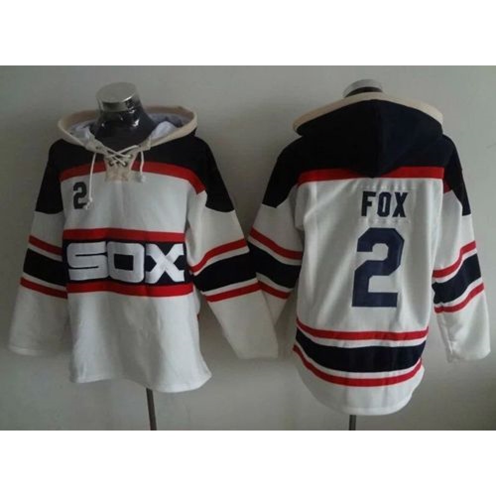 White Sox #2 Nellie Fox White Sawyer Hooded Sweatshirt Alternate Home MLB Hoodie