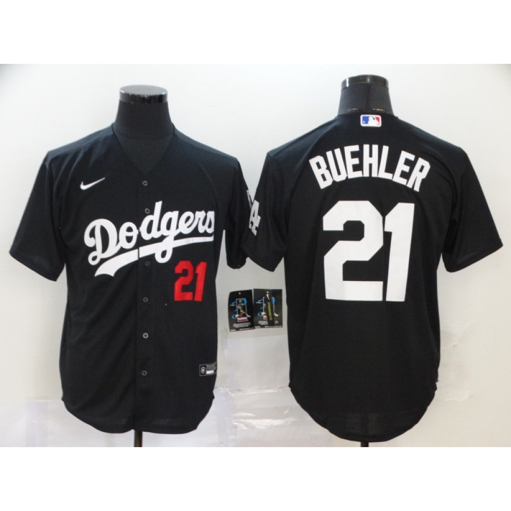 Men's Los Angeles Dodgers #21 Walker Buehler Black Cool Base Stitched MLB Jersey