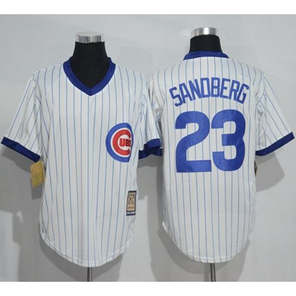 Cubs #23 Ryne Sandberg White Strip Home Cooperstown Stitched MLB Jersey