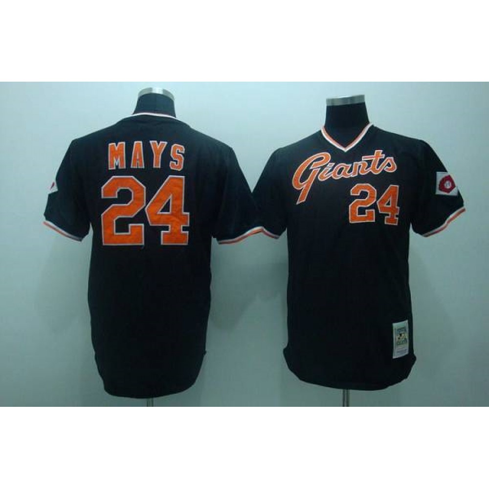 Mitchell and Ness Giants #24 Mays Stitched Black Throwback MLB Jersey