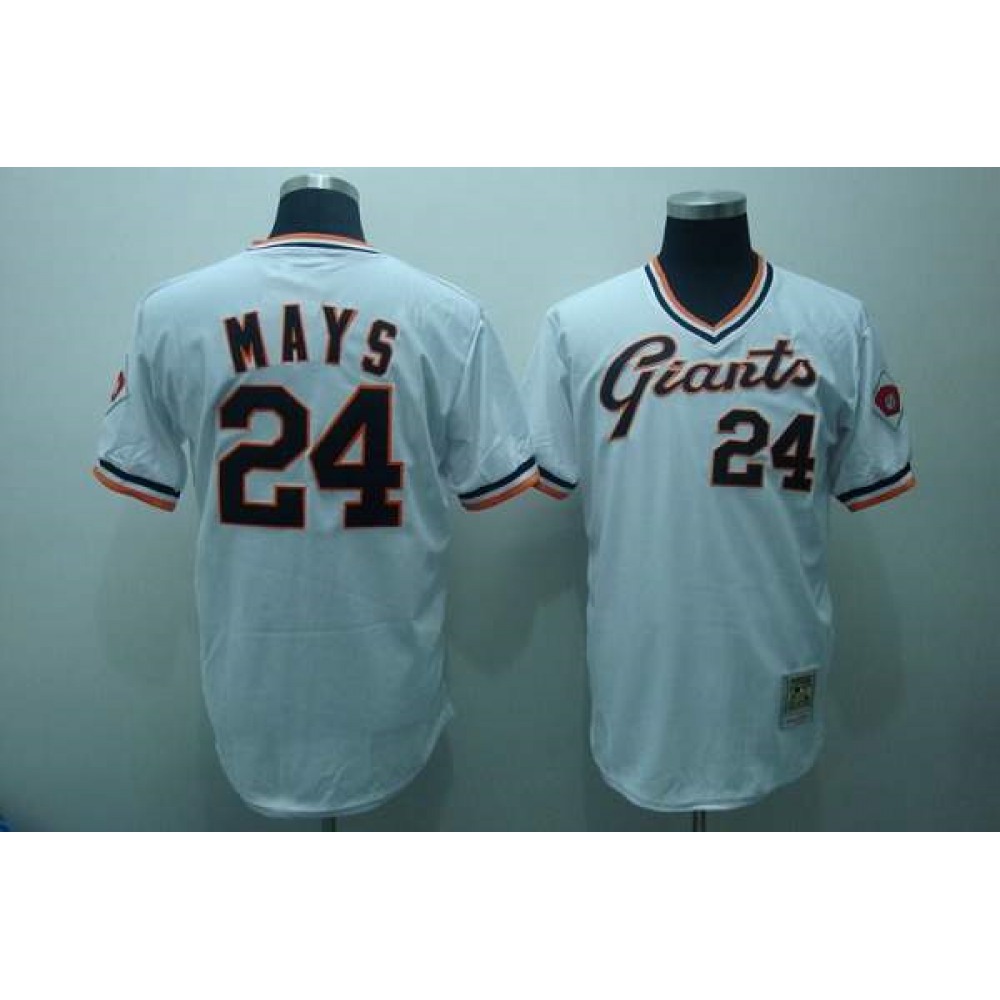 Mitchell and Ness Giants #24 Willie Mays Stitched White Throwback MLB Jersey