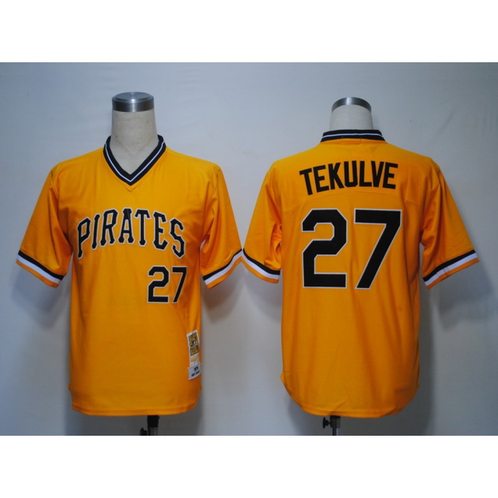 Mitchell and Ness Pirates #27 Kent Tekulve Yellow Throwback Stitched MLB Jersey