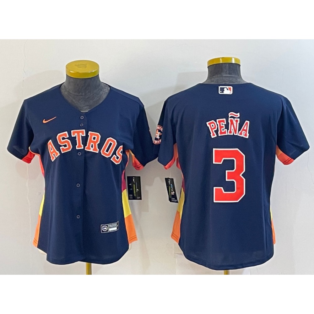 Women's Houston Astros #3 Jeremy Pena Navy With Patch Cool Base Stitched Baseball Jersey(Run Small)