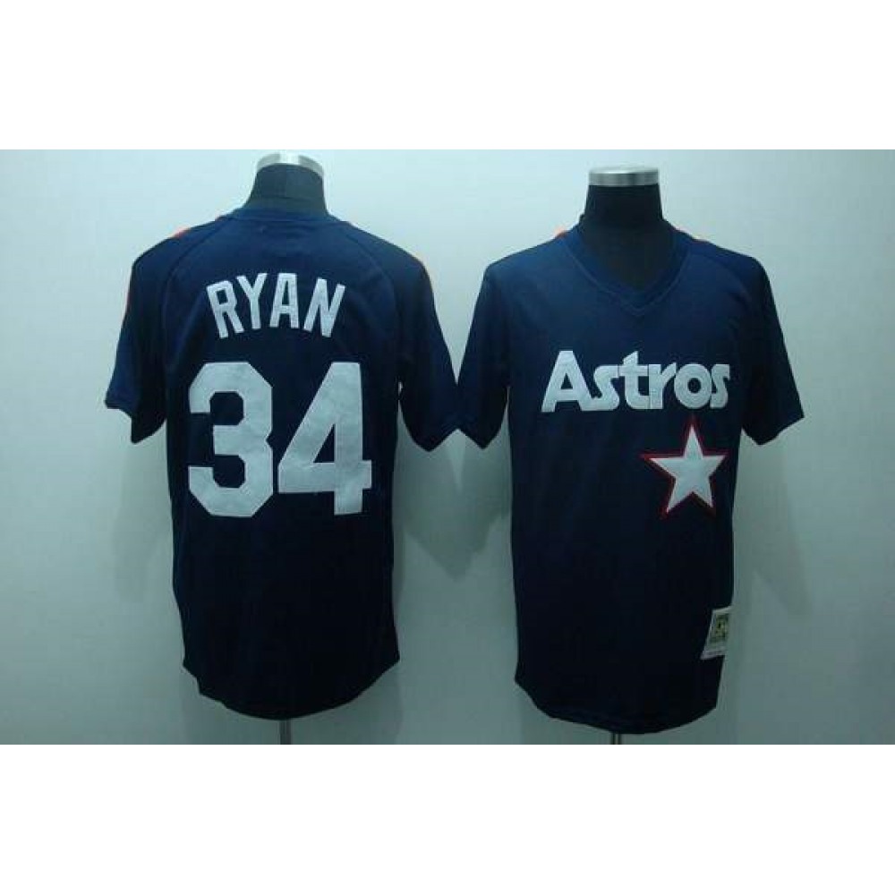 Mitchell and Ness Astros #34 Nolan Ryan Stitched Blue Throwback MLB Jersey