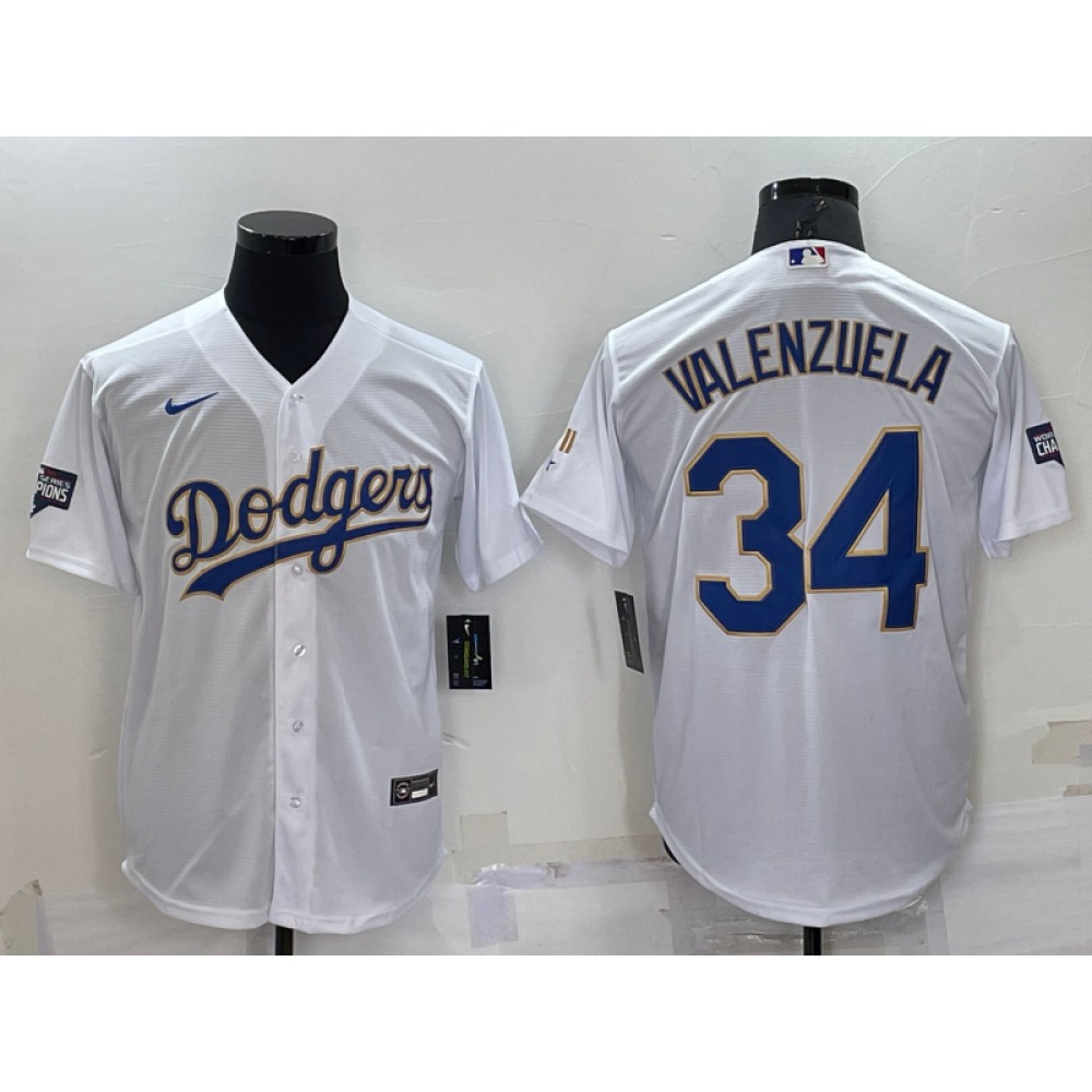 Men's Los Angeles Dodgers #34 Toro Valenzuela White Gold Championship Cool Base Stitched Jersey