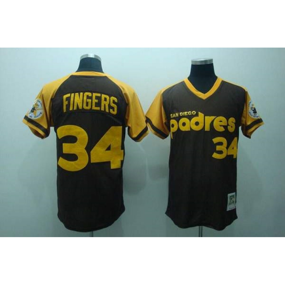 Mitchell and Ness Padres #34 Rollie Fingers Stitched Coffee Throwback MLB Jersey
