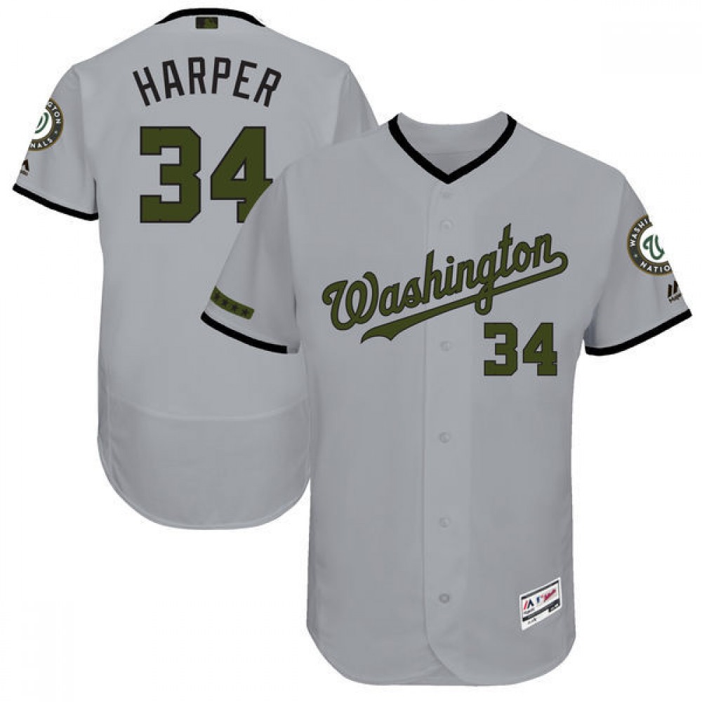 Men's Washington Nationals #34 Bryce Harper Majestic Gray 2017 Memorial Day Authentic Collection Flex Base Player Stitched MLB Jersey