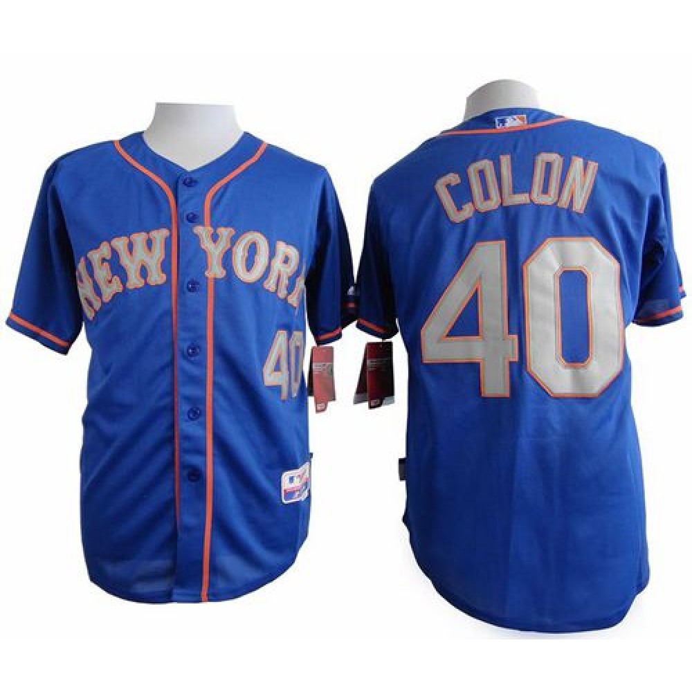 Mets #40 Bartolo Colon Blue(Grey NO.) Alternate Road Cool Base Stitched MLB Jersey
