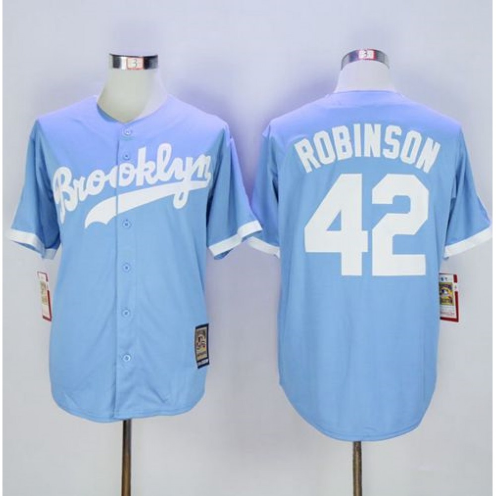 Mitchell And Ness Dodgers #42 Jackie Robinson Light Blue Throwback Stitched MLB Jersey