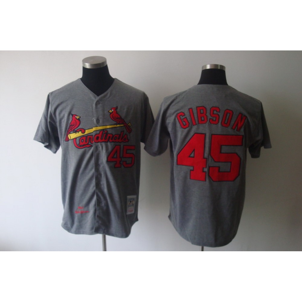 Mitchell And Ness 1967 Cardinals #45 Bob Gibson Grey Stitched Throwback MLB Jersey