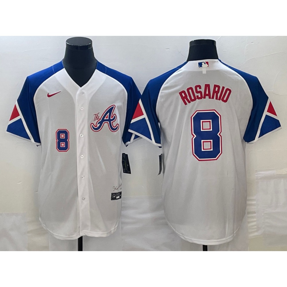 Men's Atlanta Braves #8 Eddie Rosario White 2023 City Connect Cool Base With Patch Stitched Baseball Jersey
