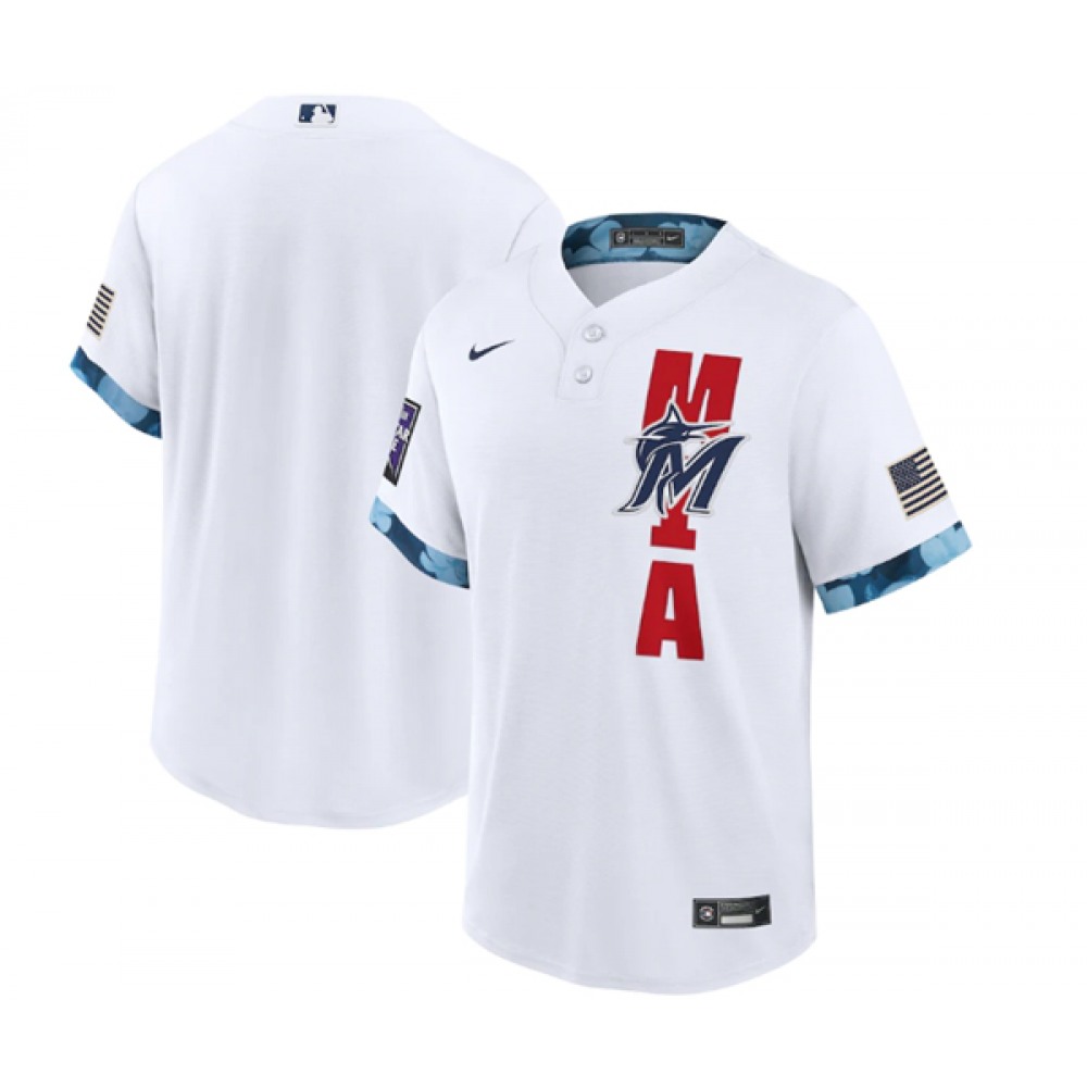 Men's Miami Marlins Blank 2021 White All-Star Cool Base Stitched MLB Jersey