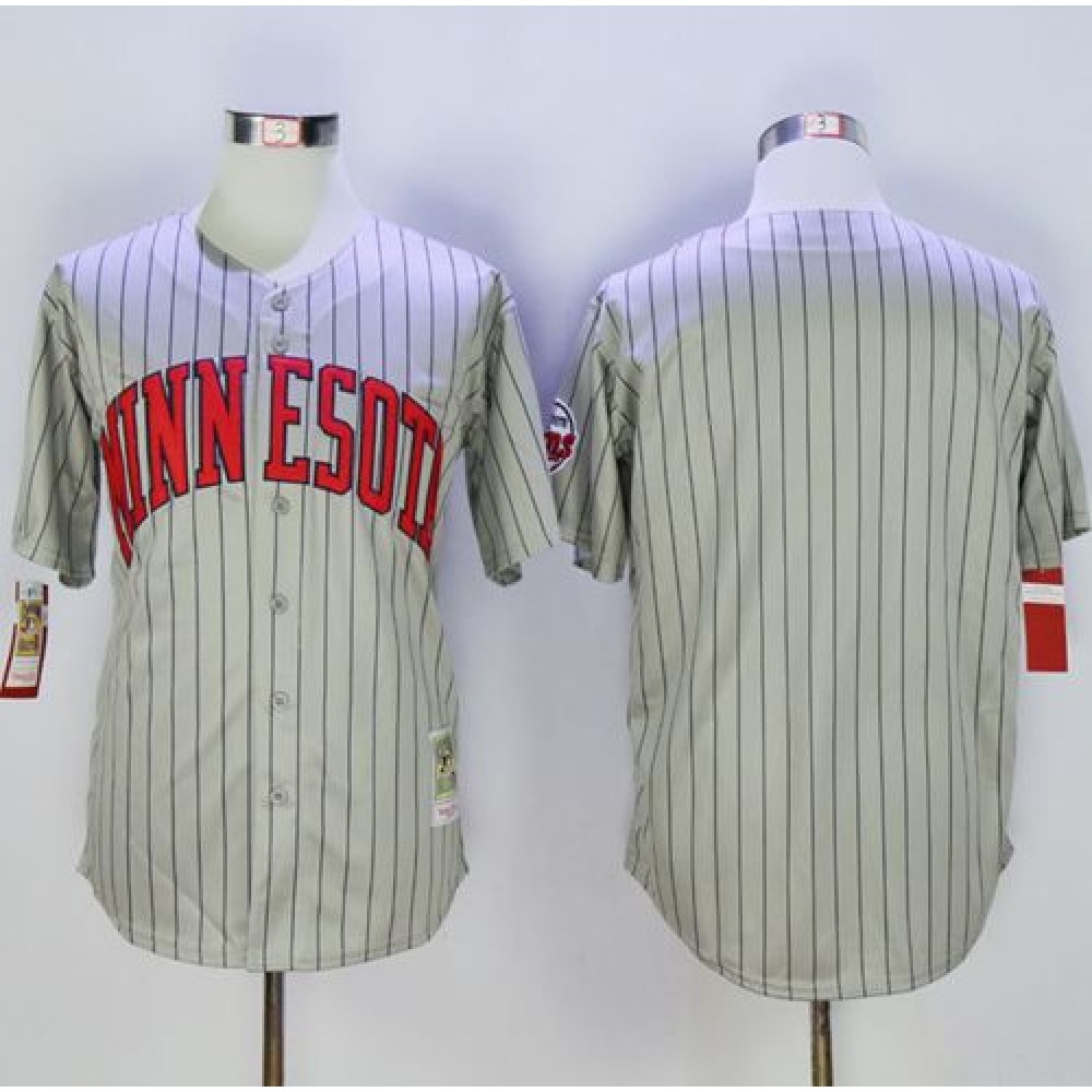 Mitchell And Ness Twins Blank Grey Strip Throwback Stitched MLB Jersey
