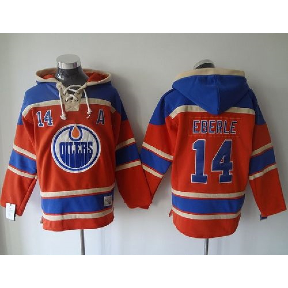 Oilers #14 Jordan Eberle Orange Sawyer Hooded Sweatshirt Stitched NHL Jersey