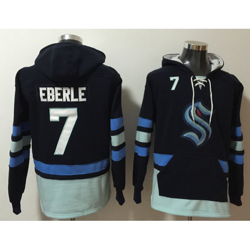 Men's Seattle Kraken #7 Jordan Eberle Navy Ageless Must-Have Lace-Up Pullover Hoodie