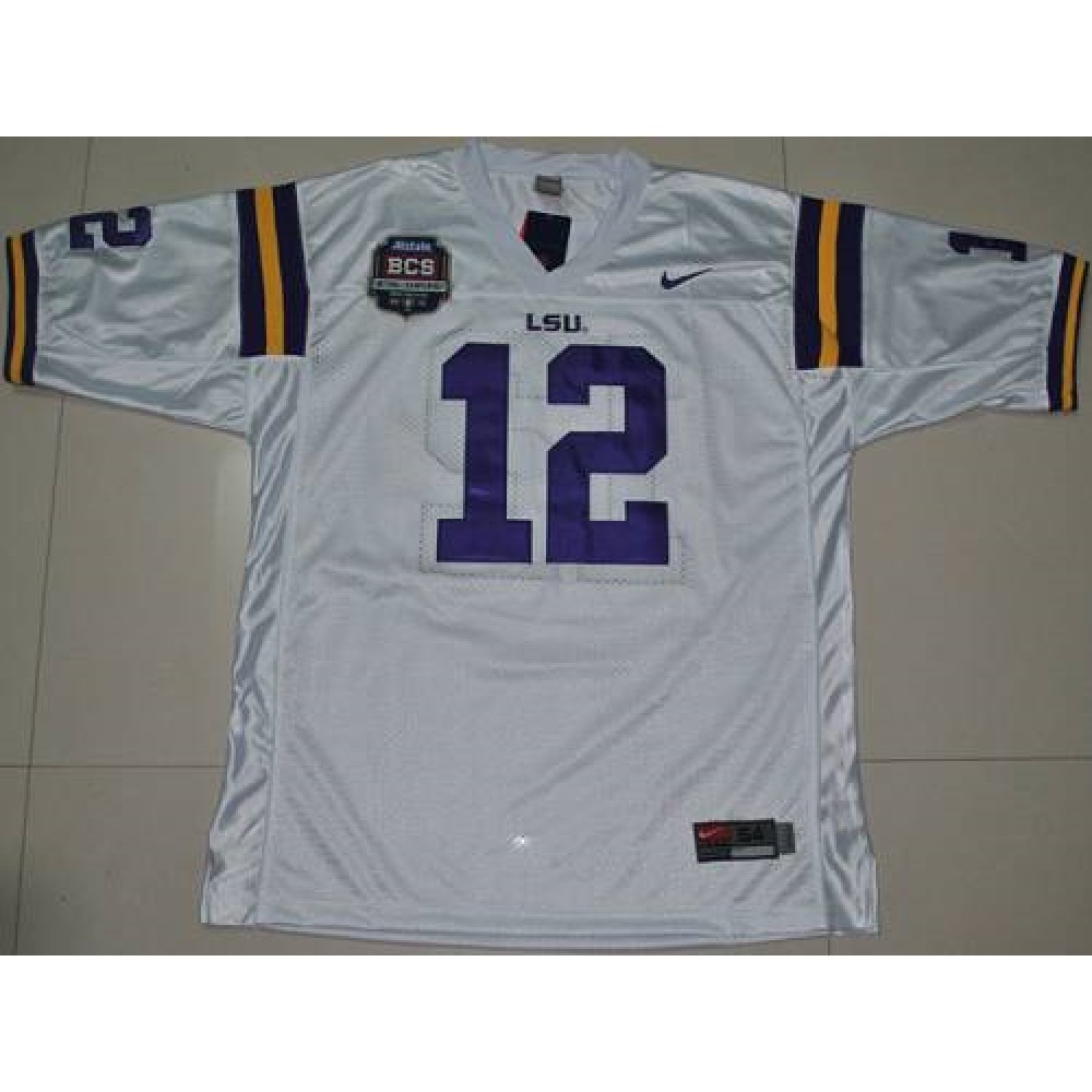 LSU Tigers #12 Jarrett Lee White 2012 BCS Championship Patch Stitched NCAA Jersey