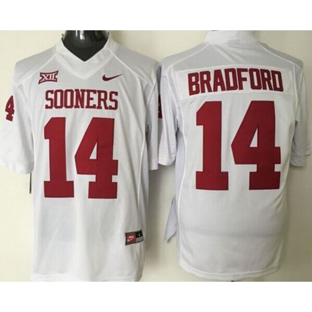 Sooners #14 Sam Bradford White Stitched NCAA Jersey