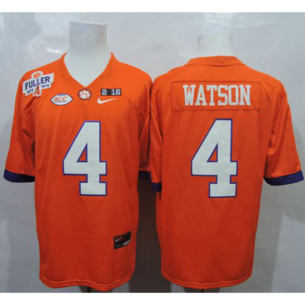 Tigers #4 Deshaun Watson Orange 1975-1978 Fuller 2016 College Football Playoff National Championship Patch Stitched NCAA Jersey