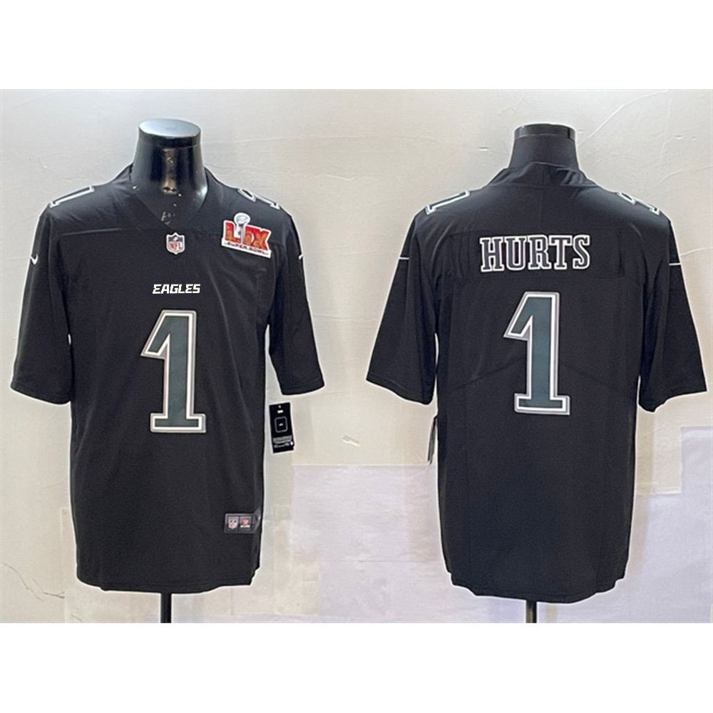 Men's Philadelphia Eagles #1 Jalen Hurts Black 2025 Super Bowl LIX Patch Fashion Vapor Untouchable Limited Stitched Football Jersey