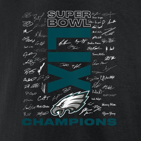 Men's Philadelphia Eagles Black Super Bowl LIX Champions Big & Tall Roster Autograph Signing T-Shirt