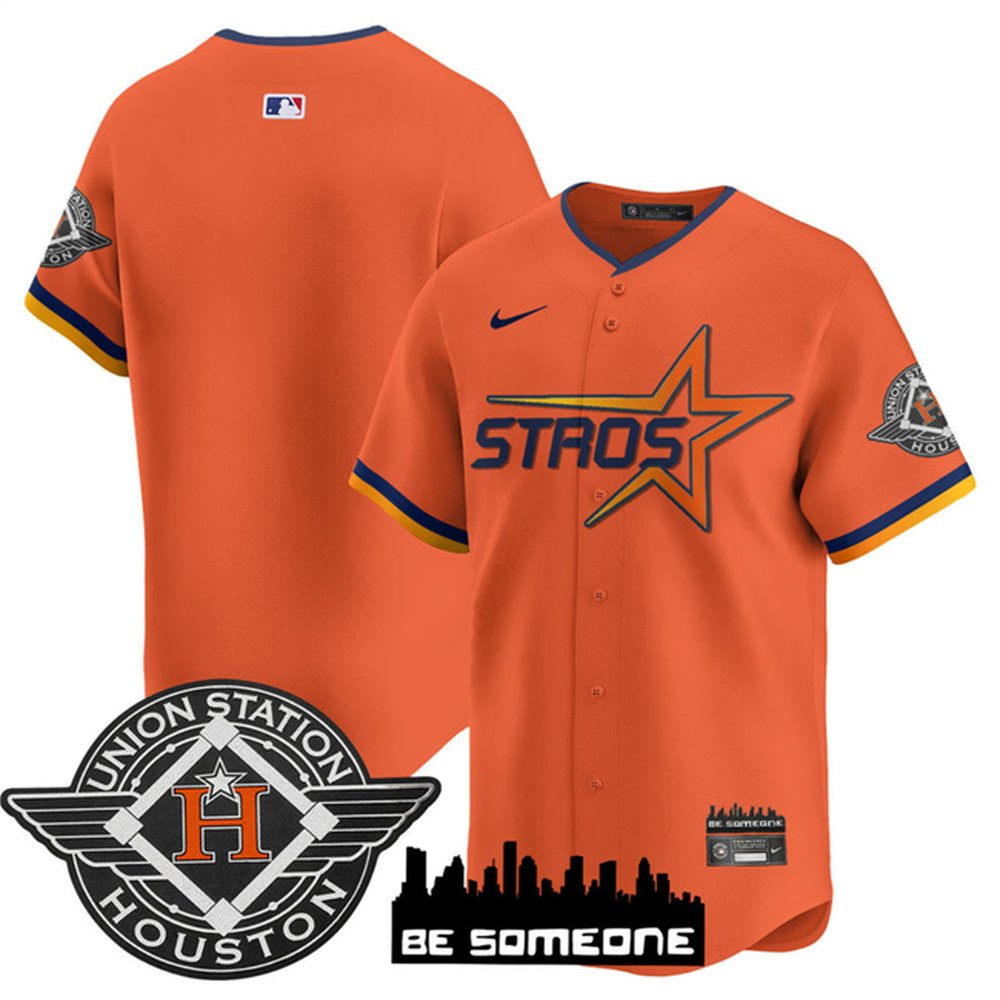Men's Houston Astros Blank Orange 2025 City Connect Limited Stitched Baseball Jersey