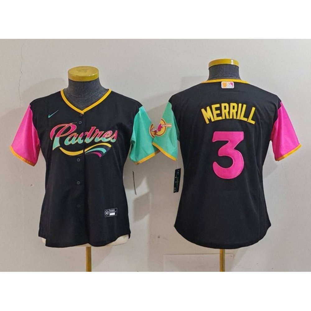Women's San Diego Padres #3 Jackson Merrill Black City Connect Stitched Baseball Jersey(Run Small)